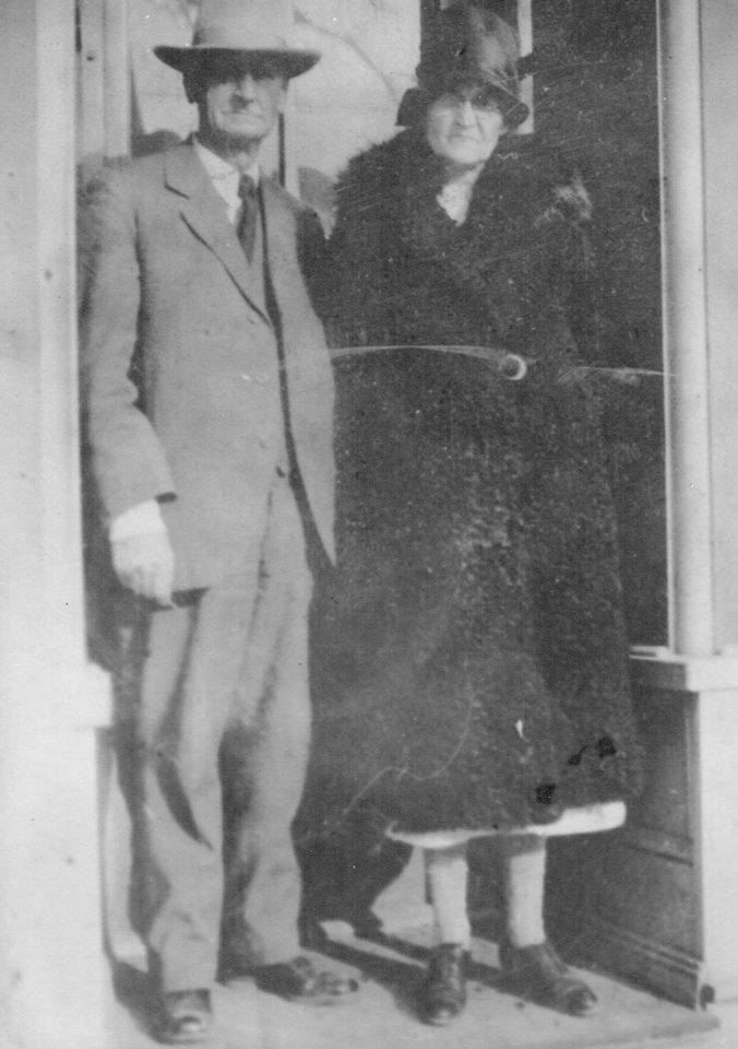The photo is Dr. Elmer W. Cashman and his wife, Alice Neely Cashman, standing in the door way of his office at 116 Main Street.