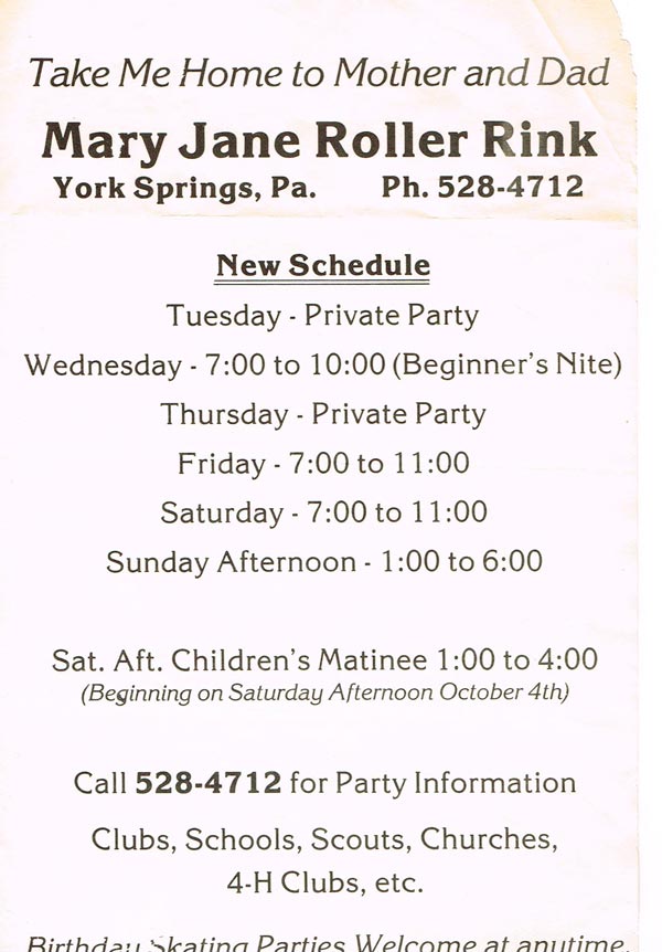 So, with a few renovations, the Mary Jane Inn became the Mary Jane Roller Rink and was opened on September 1, 1959 (nine days before the birth of this Wednesday Wanderer) with about 200 area residents in attendance. For many years, the Mary Jane Roller Rink provided recreation to area residents. And, we’re sure many memories as well.